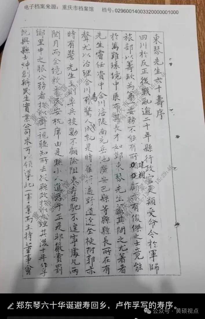 除儿时受“郑公”教诲,对其家族我一个人也不认识,怀着深度感恩,自觉钩沉被岁月尘封的往事,用不可辩驳的史料、以正视听,“复盘”写出郑东琴实业兴邦、抗战救国、拥戴新政、波澜壮阔的一生,两年多前《重庆晨报》整版刊登我撰《町庐一老翁、民生掌舵人》,这是全国公开发行的报纸首次报道,“郑公”后裔方才联系上我。我至今都没弄清楚、搞明白,为啥这样一位德高望重、从未受到过“运动”冲击,对国家做出杰出贡献的“时代重角”“民族实业家”,竟然被埋没、尘封了数十年。